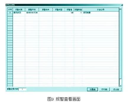 当按下报警查看按钮后,进入报警信息浏览表格,如图9所示,该表格主要用于存储下位机的故障报警情况。