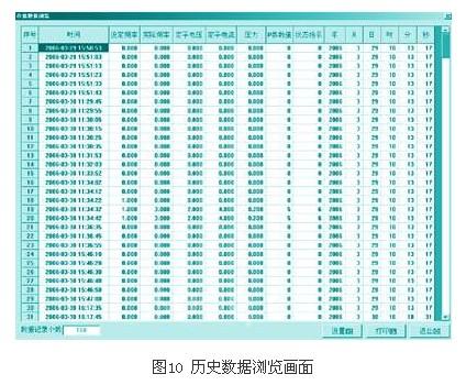 当按下历史数据按钮后,进入存盘数据浏览表格,如图10所示,该表格主要用于存储下位机上传的实时数据。