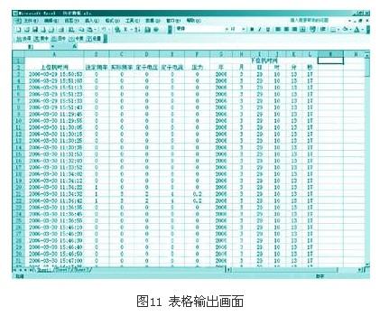 在组态软件的菜单栏中,有excel报表输出按钮,按下此按钮即可打开一个已经存储了数据的excel表格,如图11所示,用户可以对该表格进行数据处理和打印等操作。
