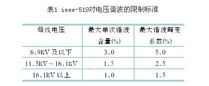 ieee-519中的限制均是针对系统稳态运行时提出的“最差”条件,暂态过程中允许出现超过此标准的情况。表1列出了ieee-519对电压谐波的限制标准。