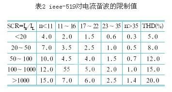 表2列出了低于6.9kv的供电系统中,在不同的短路比(短路比scr定义为最大短路电流is与平均设定最大负载电流il之比)条件下,其谐波电流值和总谐波畸变系数(thd)值的限制,而偶次谐波限制在奇次谐波的25%以下。因此,按照电力电子装置容量与电力系统短路容量之比,正确选择主电路联结形式(等效相数、脉波数)和控制方式,就十分重要。