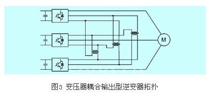 变压器耦合输出型逆变器只需3个独立的三相逆变器就可以产生中高压输出,在运行时每个逆变器都是平行的,各提供1/3的输出功率,因此为高压系统使用低压igbt器件提供了方便,这种平衡运行状态也使得直流侧电容不需要储存太多的能量。输出变压器的存在,有利于产生更高的输出电压,且能消除逆变器间的环流。