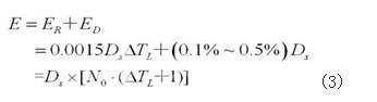 系数。假设公式(2)中的(0.1%~0.5%)为一常数,那么,(0.1%~0.5%)+c仍为一常数值。在此,假定该值为一个与环境温度有关的常数为n0。