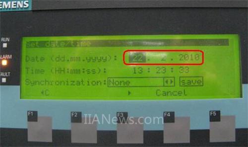 第二步:在AOP30上设置日期和时间,打开Main menu\Commissioning/service\AOP setting\Date format\Set date/time,见图2,图2中设置当前日期是2010年2月22日,时间为13时23分33秒。