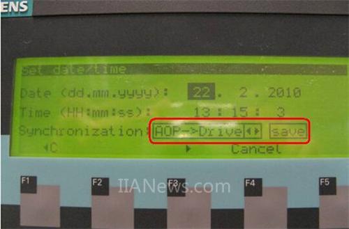 第三步:激活AOP→Drive时间同步功能,打开Main menu\Commissioning/service\AOP setting\Date format\Set date/time,见图3,选择AOP→Drive,而且G150的CU参数P3100设置为1,表示G150内部CU时钟是当前的实时时间。