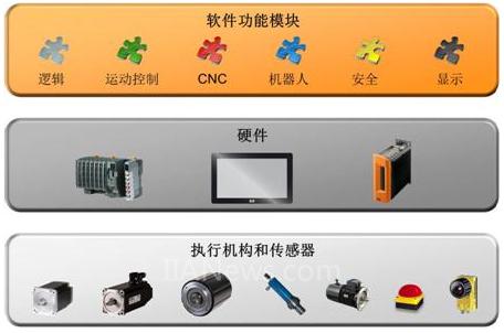 对于机器而言,无论是小型单机、中型设备互联还是大型生产系统集成,均可以被纳入统一架构,硬件可以根据系统性能和规模而变化,而软件的模块化可以配合硬件的模块化进行移植,确保系统的柔性和代码与功能库的重用性。