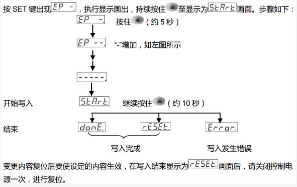 从 LED 初始状态开始,先按 SET 键,再按两次 MODE 键,显示为参数设定模式,如图:
