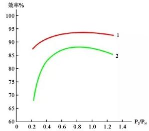 从图1与图2也可看出,由于异步电动机转子绕组要从电网吸收部分电能励磁,使得电机得效率及功率因数较低,尤其电机在负载率小于50%时,两者都大幅度下降。