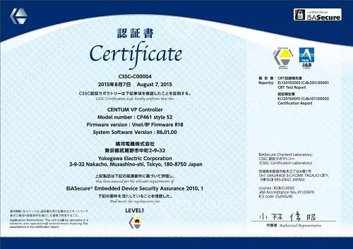 CENTUM VP现场控制单元已获得ISA安全合规机构(ISCI)的ISASecure®嵌入式设备安全保证(EDSA)认证。这个认证是通过一个CSSC(控制系统安全中心)相关认证实验室的考试获得的。它确保CENTUM具有网络安全功能,可用于石油,石化,电力和其他工业行业。