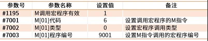 设置M指令调用宏程序的参数如下表1所示,其中#7001~#7003为一个设置组,最多可设置10组(#7011~#7013为第二组、……、#7091~#7093为第十组)。