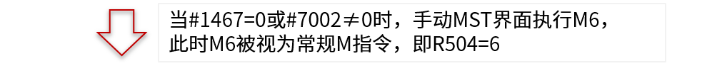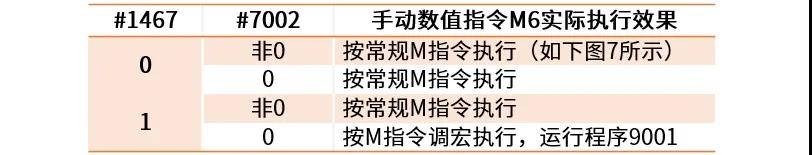 手动数值指令执行M指令调宏要求#1467=1(手动数值指令M调宏有效),同时对应的宏程序调用类型为M98模式;例如当设置#7001=6、#7003=9001时,在手动MST界面执行M6指令按下表3所示执行: