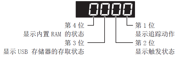 使用监视器38(监视状态)可监视当前状态。监视值为4位数字,各位数字的含义如下(不显示的位置表示0)