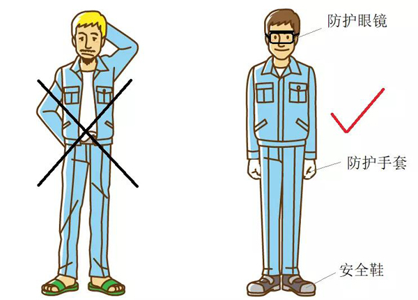 ● 请穿着适合作业的服装,并使用正确的防护用具(防护眼镜、防护手套、安全鞋)。