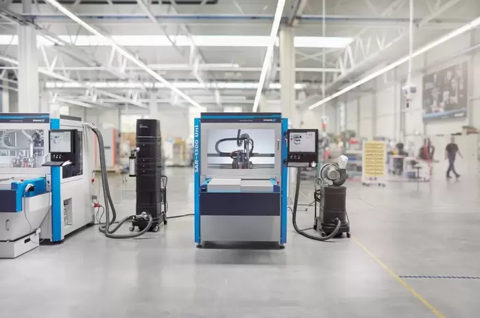 雄克在抓取系统领域是全球领先品牌,分板机中重要的零部件都是自己制造加工的,尤其是XYZ抓取切割平台运动轴,全系采用自主生产的德国磁悬浮电机(也叫直线电机)。雄克抓取系统分为电动、气动,可实现快换抓取,甚至重复定位精度可达到微米级别,来保证客户生产制造上的稳定性。