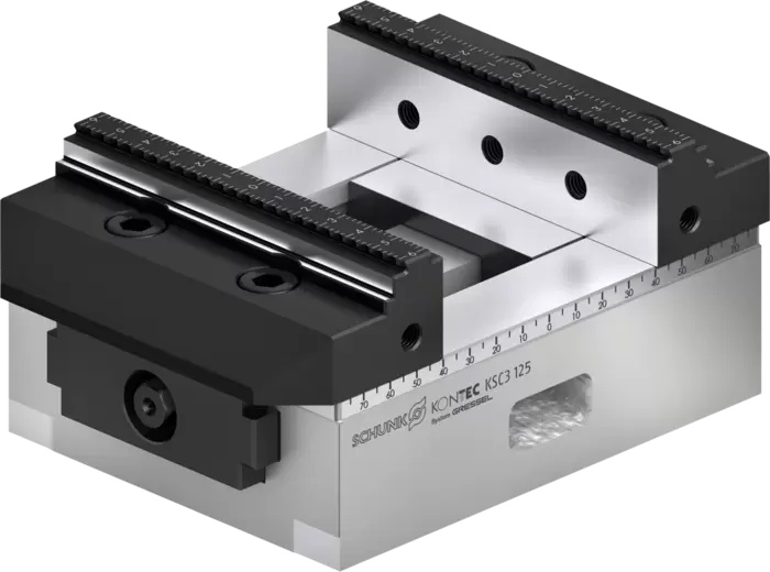 KSC3可以与前代产品KSC系列虎钳完全兼容,更换新产品对原程序及设备无影响。此外,雄克还提供类型广泛的夹爪系统,仅通过两个螺丝即可简便更换钳口以适应新的夹持任务。KSC3虎钳还可以通过标配的VERO-S零点快换接口与雄克模块化工件夹持系统的其他产品快速组合,进一步拓展应用范围。KONTEC KSC3系列现有80、125和160三种规格,夹持力分别可达25kN、35kN 和 50kN。