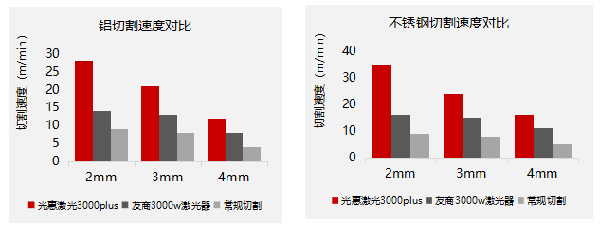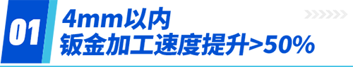 此次推出的Plus系列3000W产品专为钣金加工市场进行设计优化,激光输出能量密度更高,光束质量近单模输出,相较于目前市面上的常规输出芯径为100um或50um,光惠激光PLUS系列3000W单模组连续光纤激光器可支持30um的更小芯径的选择, 4mm以下钣金切割速度更快,无惧高反材料加工,最大提效增幅>50%,穿孔效率提升1倍,同时与市场同类产品配置下4mm以上厚板切割速度提升依然显著。
