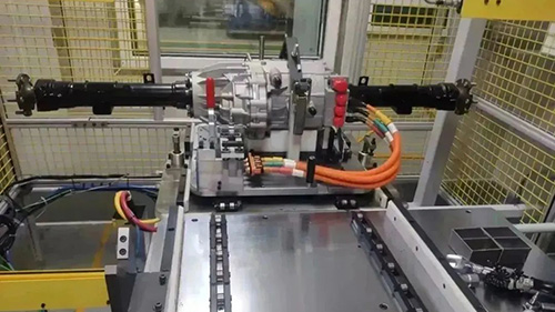 该电机测试台主要测试汽车电机噪音以及减速机内部异常情况。尼得科CT的NE300系列变频器为电机提供电力控制。