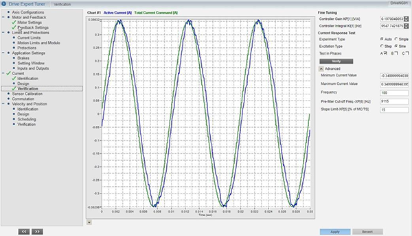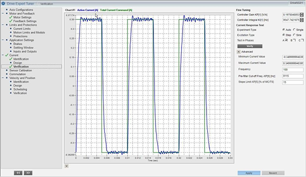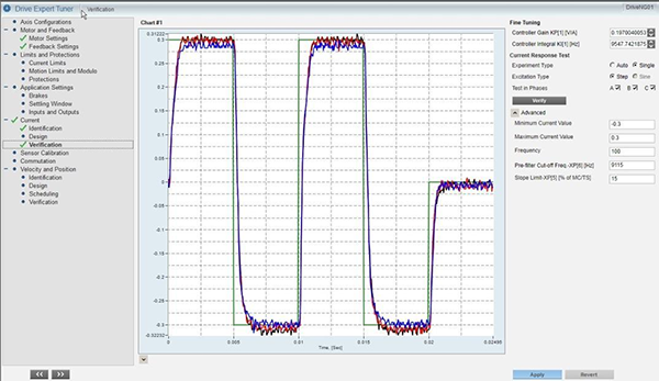 实时阶跃或正弦波法显示每个电机相位,并提供更改控制器参数和实时查看结果的功能。
