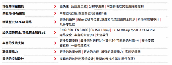 ● 高效且通过认证的EtherCAT网络,循环周期时间降至100μs,带来了快速 而精确的机器运动控制。