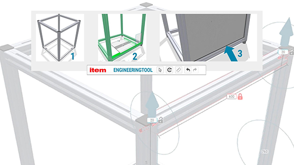在设计时,一定要记住面板伸入槽轨的具体尺寸,这一点至关重要。该尺寸在面板两侧都要考虑——而我们的 item Engineeringtool 在线工具会帮您计算。它会自动计算超出的尺寸,从而确保面板的技术深度准确无误。无论是型材、面板还是面板固定件——当您改变设计尺寸时,所有的零部件都会自动更新。“长期以来,人们习惯了对自己的设计方案不断地进行修改。但是,在 CAD 系统中,这是不可能实现的,因为所有的数据需要一个个修改,而这可能导致错误。相比之下,item Engineeringtool 真的非常智能。我们不断提升设计项目的可靠性,从而为客户提供支持。现在,客户可以更轻松、更方便地使用 item Engineeringtool,因为他们需要考虑的事情更少了”。Thiel 解释说。