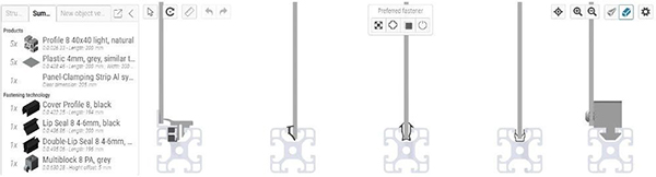 这种面板紧固件具有极大的优势,它无疑会开启更多的潜在应用,因此您会受益匪浅。比如,您可以利用新功能节省大量的时间,并创建更完整的设计方案。随着在线工具的扩展,我们又一次对客户的需求做出了积极回应。“一直以来,我们的客户都希望我们在 item Engineeringtool 中增加将面板固定在槽轨中的选项。我们很高兴现在终于有了这个选项。客户的反馈对我们非常重要,因为我们一直是根据 CIP(持续改善流程)原则开发 item Engineeringtool 在线工具的” 。item 产品经理兼在线工具专家 Christian Thiel 说道。
