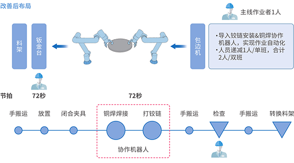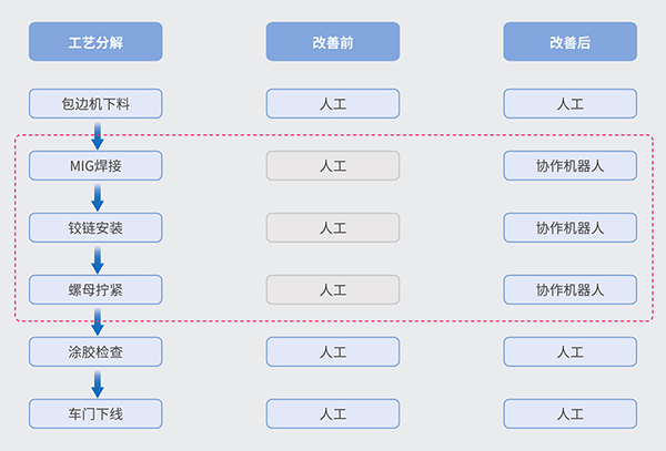 ■ 铰链上料、螺母拧紧、氩弧焊等工艺复杂,仅靠人工较难处理