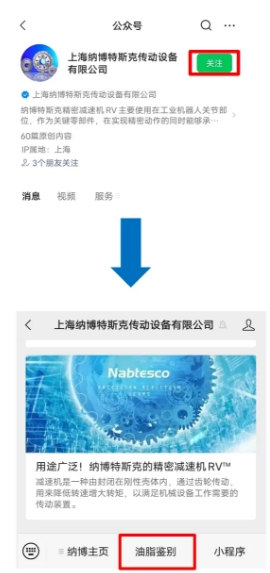 ②关注企业微信公众号(上海纳博特斯克传动设备有限公司),进入【油脂鉴别】页面