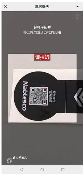 (1)在油桶封口处贴有正规、完好的“Nabtesco”润滑剂鉴别标签,且需要通过官方公众号进行正品鉴别