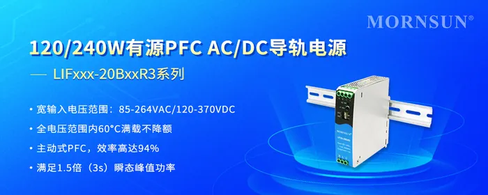 针对工程应用中对产品的尺寸匹配和主动式PFC功能需求的难题,金升阳在2021年上市LIFxx-10BxxR2系列功能型导轨电源的基础上,推出性能更优的导轨LIF120/240-20BxxR3系列升级产品。