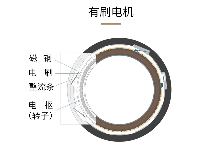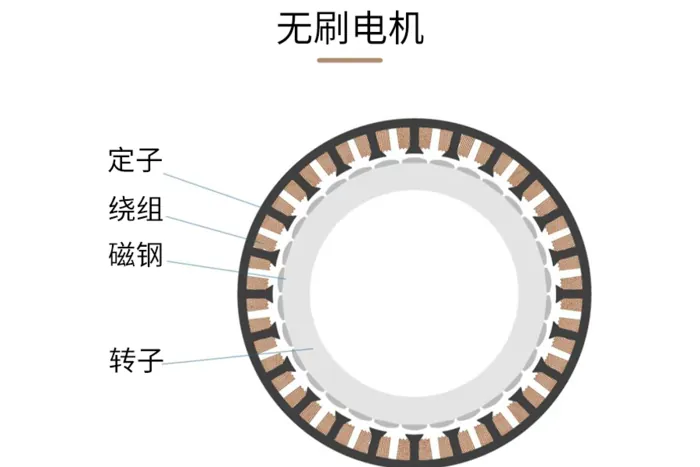 由于没有物理电刷与旋转的换向器接触,无刷直流电机的基本设计与有刷电机相比得到了改善,进而提高了效率和性能。其电枢线圈缠绕在定子/机架上的槽形叠片上,而永磁体则固定在转子上。