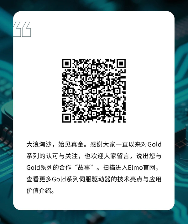 作为Elmo 最为经典且应用最广的伺服驱动器系列,Gold系列自2012年推出以来,始终以卓越的品质和功能,深受行业用户信赖。