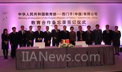 2011年2月16日,中华人民共和国教育部—西门子(中国)有限公司教育合作备忘录签订仪式在北京隆重举行。教育部副部长郝平与西门子(中国)有限公司执行副总裁、东北亚工业业务领域总裁吴和乐博士共同宣布双方将合作推动中国工程教育发展。西门子承诺为中国高校和职业院校培养高素质的工程人才贡献力量——把西门子在工业界最新的技术带到教育领域,把西门子的工程师培养机制、员工培训体系、认证体系和追求卓越、矢志创新、勇担责任的企业文化带进校园。这一合作标志着西门子正式与教育部建立长期战略合作伙伴关系,以加强双方在教育领域的密切合作。