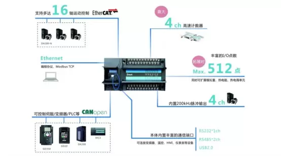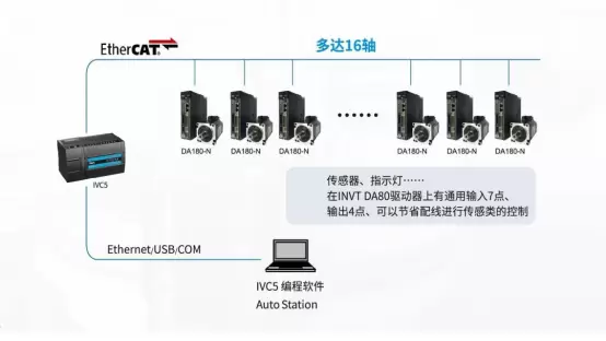 英威腾IVC5小型PLC,内置基于EtherCAT总线的运动控制方案,适用于多轴的运动控制设备。