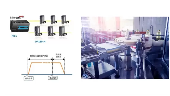 IVC5可控制多轴伺服,运行过程中可通过接入伺服的外部输入停止信号执行定长减速停机。
