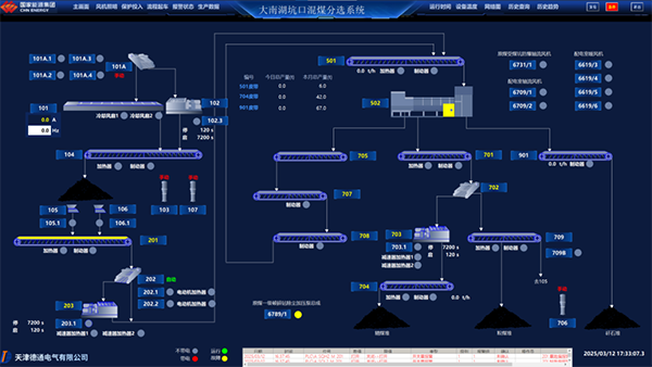 蓝普锋自主研发的RPC3000系列PLC成功应用于大南湖煤矿坑口混煤分选系统智能化改造,覆盖原煤一级破碎站、原煤卸料点、受煤坑、筛分破碎点、干法分选、矸石卸料点、精煤筛分破碎点及22号、1号至3号中煤转载点等全流程控制节点,并通过栈桥设备实现煤流高效衔接。