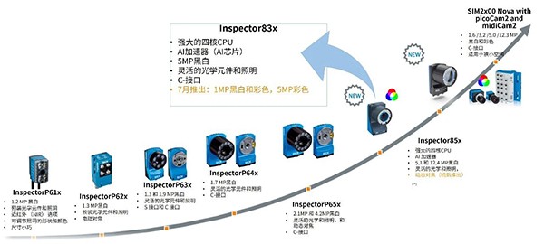 截至目前,SICK可搭配深度学习License(Deep Learning)使用的Inspector产品家族呈现出由低像素→高像素,常规速度→高速,黑白→彩色逐步迭代的发展过程。