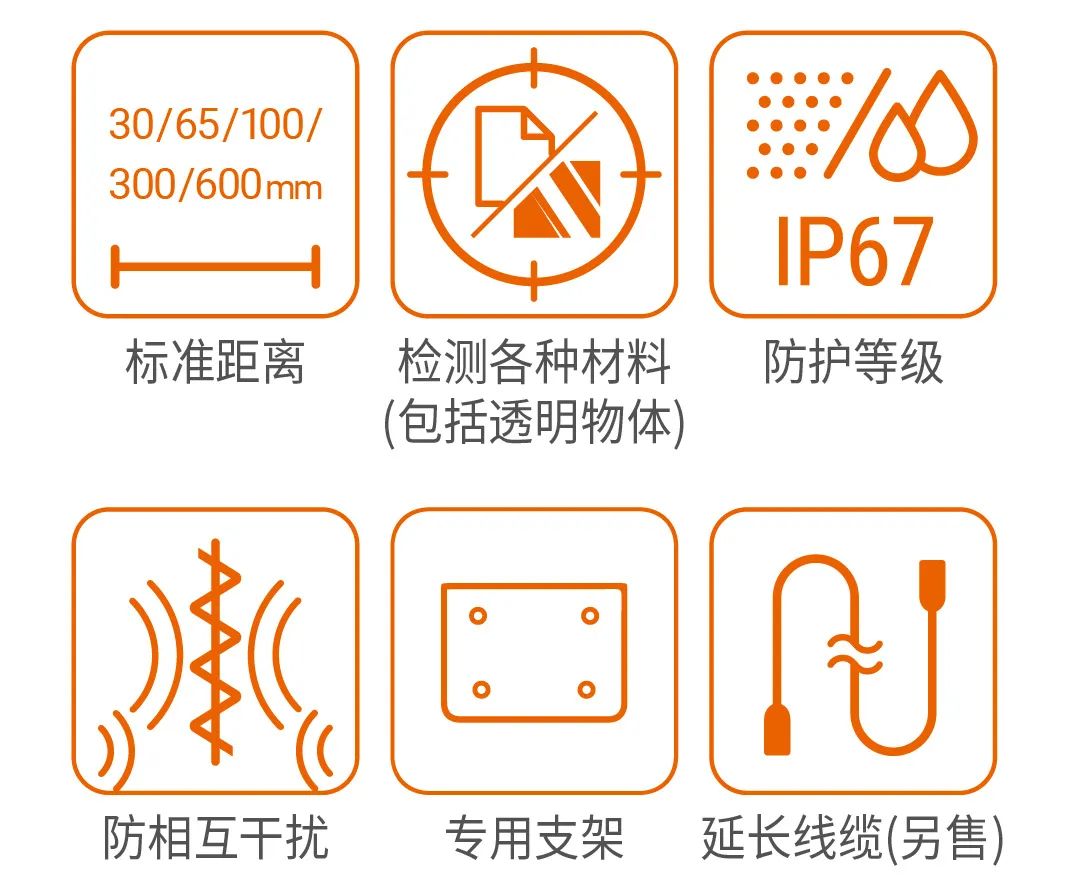传感器可以准确检测各种目标材料,包括黑/白纸、不锈钢、橡胶、PCB等,正反射类型允许对反射和透明材料进行稳定的测量。