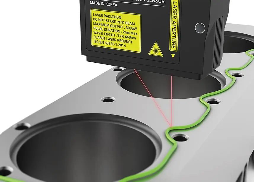 位移传感器可用于测量发动机缸体上的粘胶高度。