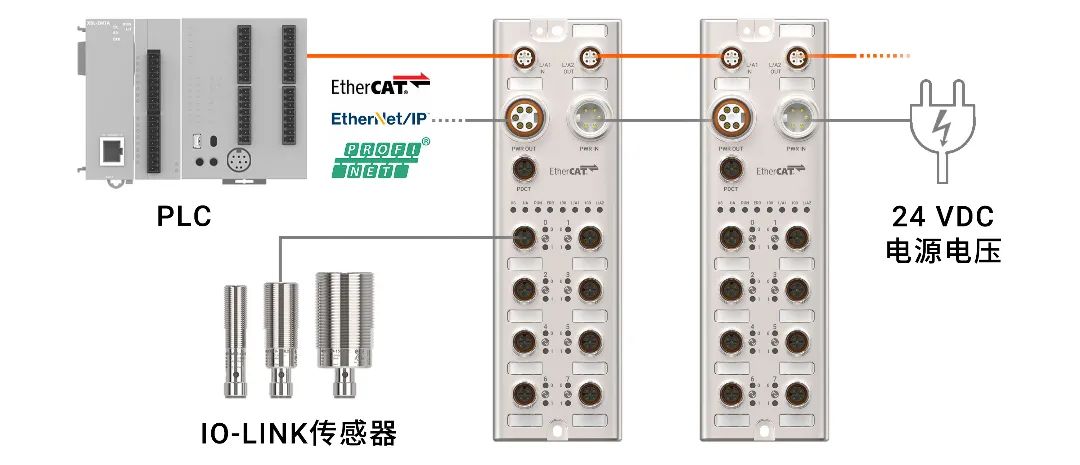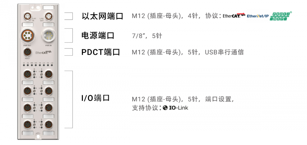 • 上位通信协议: EtherCAT,EtherNet/IP,PROFINET• 下位通信协议: IO-Link ver. 1.1 (端口等级: Class A)