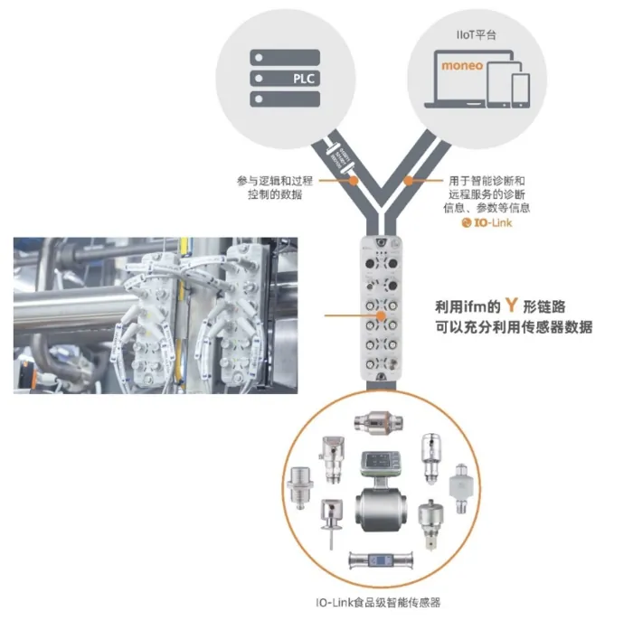 现代食品生产的智能化管理,关键在于实现从单台设备到整条产线的全流程高效管控。通过在各个关键工艺环节部署支持IO-Link等先进功能的智能传感器,可实时精准监测温度、压力、流量等重要参数。ifm致力于为客户构建统一、可追溯的智能监控体系,从而有效保障设备状态透明可控与生产工艺的持续稳定。