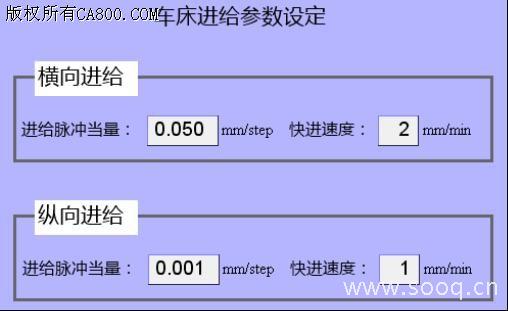 3)主要技术参数:横向进给脉冲当量0.05mm/step,快进速度2mm/min;纵向进给脉冲当量0.001mm/step,快进速度1mm/min。