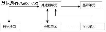 组成:32bit RISC 200M CPU、显示单元(LCD)、输入单元(电阻式触控面板)、通讯接口、数据存贮单元(64M DRAM/32M Flash)等;