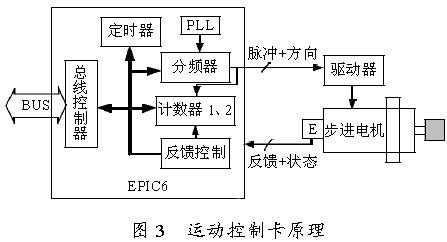 整个运动控制卡采用脉冲加方向的控制方式,实现电机的转速和方向的控制。为了保证电机的控制精度,在运动控制卡输出脉冲至电机的驱动器的同时,运动控制卡从编码器中读出反馈脉冲和方向。这样,只要设计两个计数器同时对输出脉冲和反馈脉冲进行计数,并且对两个计数器的计数值进行判断和求差,然后根据求出的差值进行循环插补,即可实现电机的闭环控制。