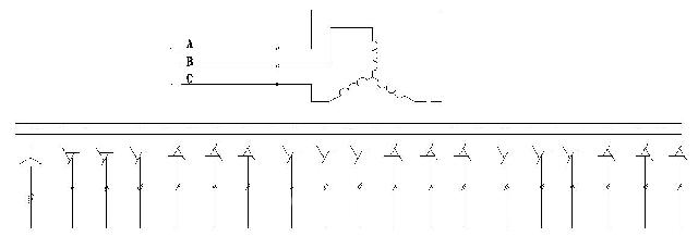AMB-HVI系列高压变频器的输入侧变压器采用移相整流变压器,其电气原理图如图3所示。变压器原边绕组为6KV,副边共十八个绕组分为三相。每相有6个次级绕组,按照一定移相角度依次绕制而成,然后将各次级绕组连接到各功率单元上,这种逐次移相式接法可以有效地减小各齐次谐波含量,此外,采用移相变压器进行隔离输出,使得输入侧谐波控制在4%以内,完全低于国家规定的标准,不会对电网造成干扰。