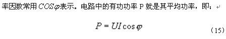 正弦电路中,功率因数是由电压U与电流I之间的相位角差决定的。在此情况下,功率因数常用 表示。电路中的有功功率P就是其平均功率,即: