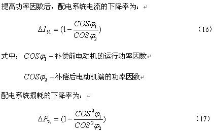 配电系统的电流下降率和配电系统的损耗下降率都是对单台电动机补偿前后电流和损耗而言,不是指配电系统电流和损耗的实际变化。