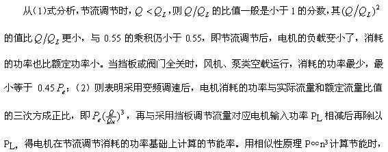 也应先计算原系统节流调节时消耗的电能,再与系统变频调速后消耗的电能相减,这不正好是(2)式分子的表示式。因此,要准确地计算节能,还需使用(1)式计算系统节流调节时消耗的电能。