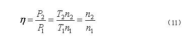 液力偶合器是通过控制工作腔内工作油液的动量矩变化,来传递电动机能量,电动机通过液力偶合器的输入轴拖动其主动工作轮,对工作油进行加速,被加速的工作油再带动液力偶合器的从动工作涡轮,把能量传递到输出轴和负载。液力偶合器有调速型和限矩型之分,前者用于电气传动的调速,后者用于电机的起动,系统中的液力偶合器在电机起动时起缓冲作用。由于液力偶合器的结构与电磁转差离合器类似,仿照电磁调速器效率的计算方法,可得: