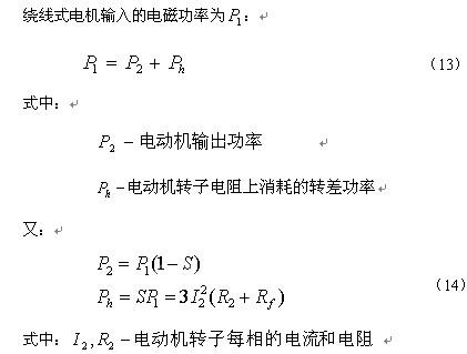在(14)式中,若S=0.5,电磁功率有一半消耗在转子电阻 上,调速系统效率低于50%。利用(14)式,只要知道电机运行的转速,就可方便地计算绕线式电机串接电阻调速消耗的电能,节能量的计算就非常简单了。
