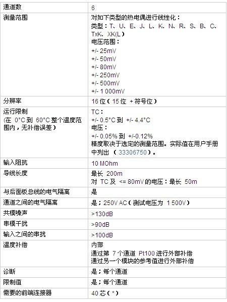 技术数据如下。有关完整的模块数据,请参见用户手册(条目号 33306750)。